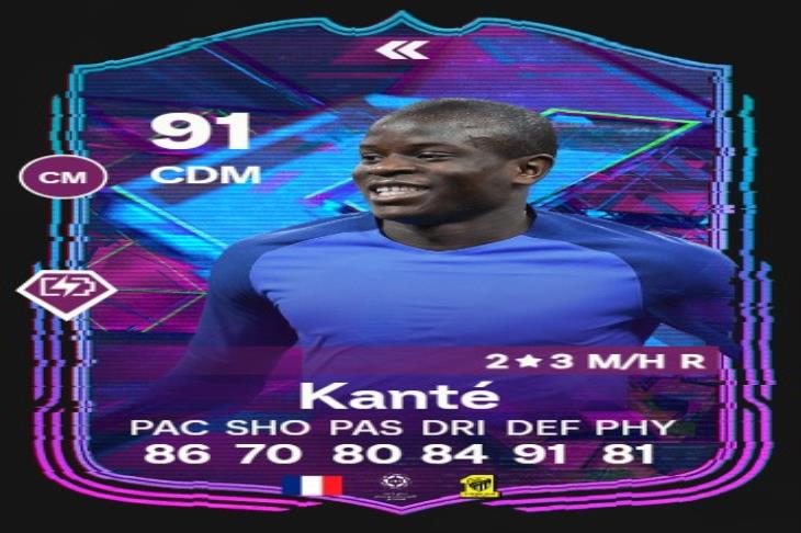 توافرت بطاقة الفرنسي نجولو كانتي لاعب خط وسط فريق اتحاد جدة السعودي في تحديات لعبة FC24 بطاقات 91.
