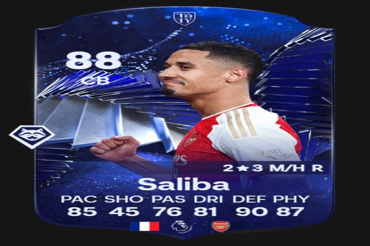 وتواجد اللاعب الفرنسي ويليام ساليبا مدافع فريق أرسنال الإنجليزي نسخة TOTY HONOURABLE بطاقات 88.