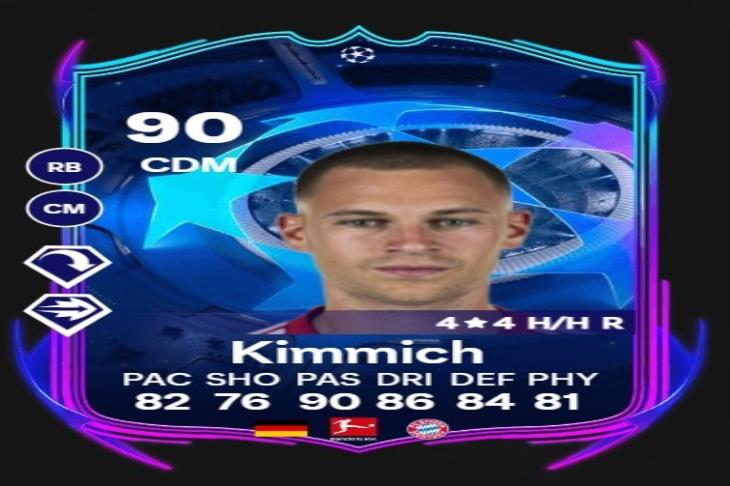 توافرت بطاقة اللاعب الألماني جوشوا كيميش لاعب فريق بايرن ميونخ في تحديات لعبة FC24 بطاقات 90.