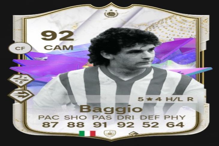 توافرت بطاقة أسطورة منتخب إيطاليا السابق روبرتو باجيو بطاقات 92.