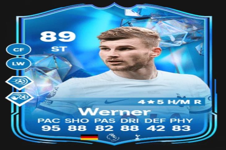 توافرت بطاقة الألماني تيمو فيرنر مهاجم فريق توتنهام الإنجليزي في تحديات لعبة FC24 بطاقات 89.