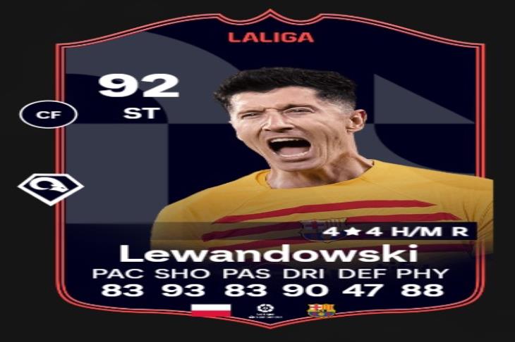 توافرت بطاقة اللاعب البولندي روبرت ليفاندوفسكي لاعب فريق برشلونة الاسباني في تحديات لعبة FC24 بطاقات 92.