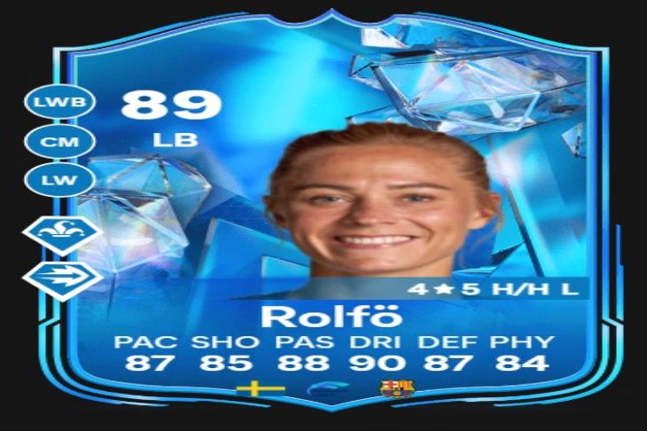 توافرت بطاقة لاعبة كرة قدم السويدية فريدولينا رولفو لاعبة خط هجوم فريق برشلونة الاسباني في تحديات لعبة FC24 بطاقات 89.