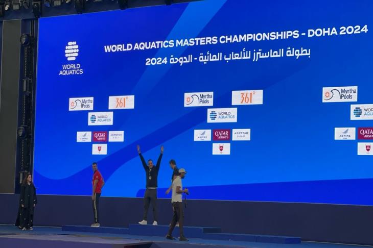 فاز السباح المصري الأوليمبي أحمد ندا، بالميدالية الذهبية في بطولة العالم للألعاب المائية للأساتذة ضمن سباق 100 متر فراشة، والتي أقيمت مؤخراً في قطر، حيث حصل بذلك على المركز الأول عالمياً في الفئة العمرية من 35 إلى 40 سنة، ليصبح ضمن قائمة أفضل السباحين في العالم في هذه الفئة العمرية.
