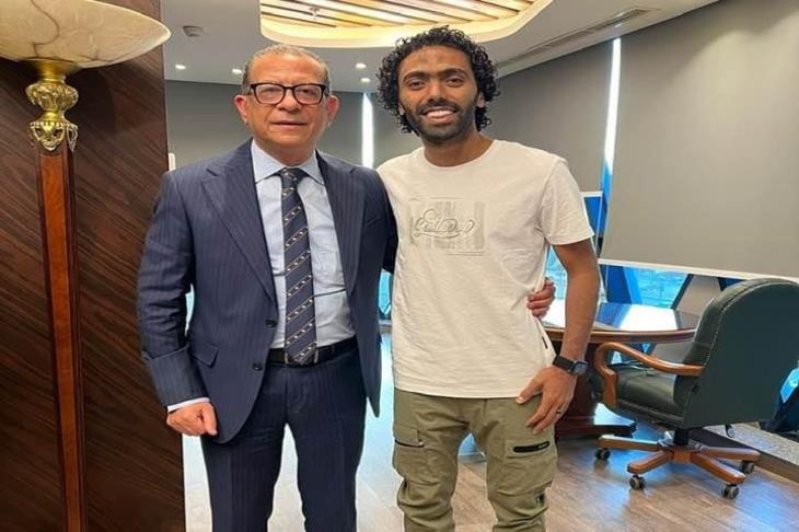 حسين الشحات رفقة محاميه أشرف عبدالعزيز