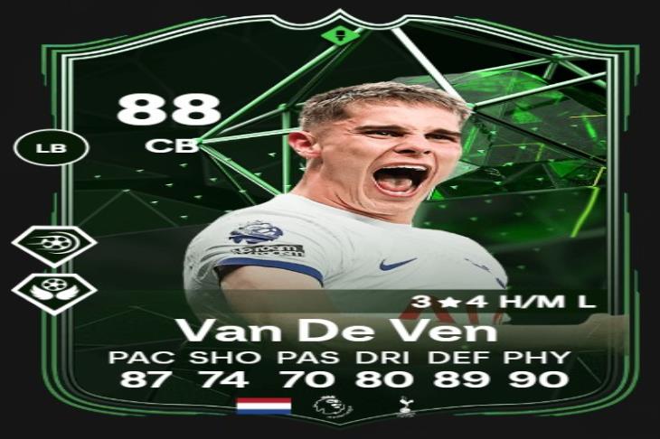 توافرت بطاقة الهولندي ميكي فان دي فان لاعب فريق توتنهام الإنجليزي في تحديات لعبة FC24 بطاقات 88.