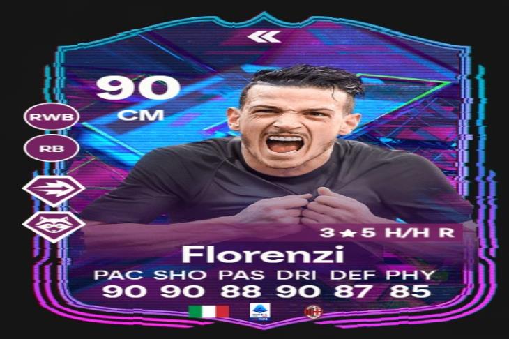 توافرت بطاقة الإيطالي أليساندرو فلورينزي لاعب اي سي ميلان الإيطالي في تحديات لعبة FC24 بطاقات 90.