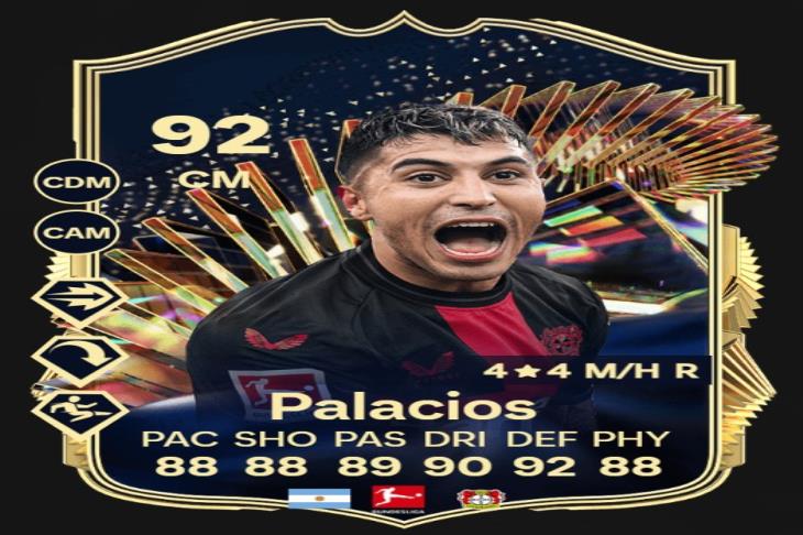 توافرت بطاقة الأرجنتيني إيزيكيل بالاسيوس لاعب فريق بايرن ليفركوزون الألماني، بطاقات 92 في تحديات لعبة FC24.