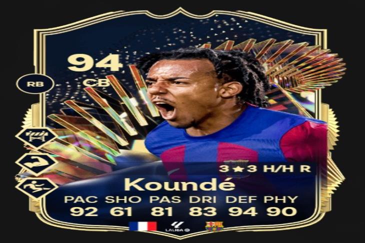 توافرت بطاقة الفرنسي جول كوندي ظهير نادي برشلونة الإسباني، بطاقات 94 في تحديات لعبة FC24.