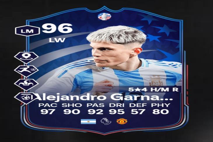 توافرت بطاقة أليساندرو جارناتشو لاعب مانسشتر يونايتد الإنجليزي ومنتخب الأرجنتين في تحديات لعبة FC24 بطاقات 96.