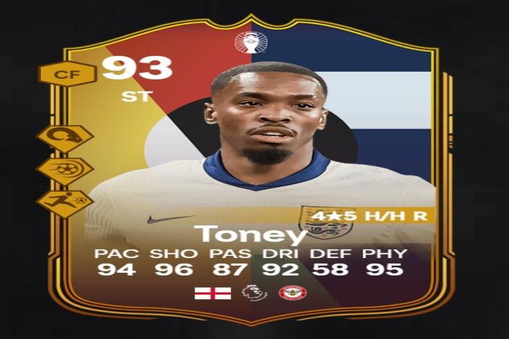 توافرت بطاقة الإنجليزي إيفان توني لاعب برينتفورد الإنجليزي ومنتخب إنجلترا في تحديات لعبة FC24 بطاقات 93.