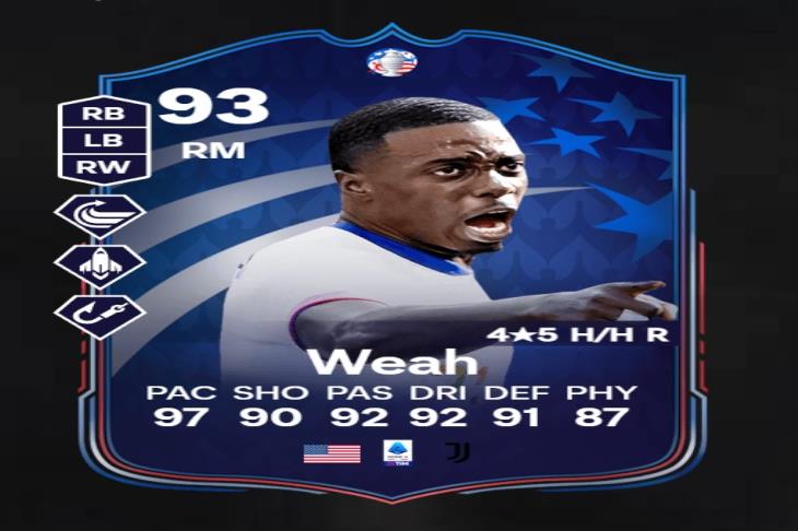 توافرت بطاقة تيموثي ويا لاعب نادي يوفنتوس الإيطالي ومنتخب الولايات المتحدة الأمريكية في تحديات لعبة FC24 بطاقات 93.