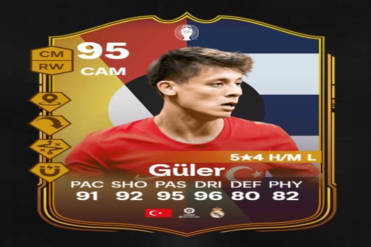 توافرت بطاقة أردا جولر لاعب ريال مدريد ومنتخب تركيا في تحديات لعبة FC24 بطاقات 95.