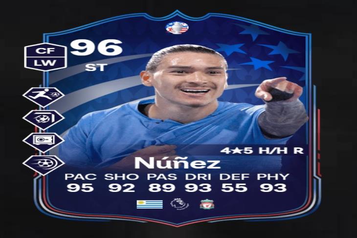 توافرت بطاقة داروين نونيز لاعب ليفربول الإنجليزي ومنتخب أوروجواي في تحديات لعبة FC24 بطاقات 96.