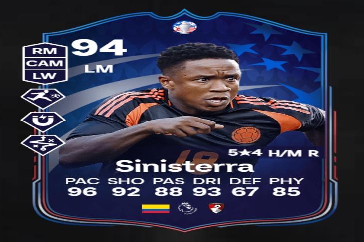 توافرت بطاقة لويس سينيستيرا لاعب بورنموث الإنجليزي ومنتخب كولومبيا في تحديات لعبة FC24 بطاقات 94.