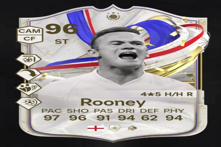 توافرت بطاقة أسطورة منتخب إنجلترا السابق، واين روني بطاقات 96 في تحديات لعبة FC24.