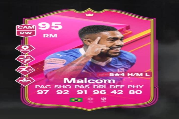 توافرت بطاقة البرازيلي مالكوم لاعب فريق الهلال السعودي في تحديات لعبة FC24 بطاقات 95.