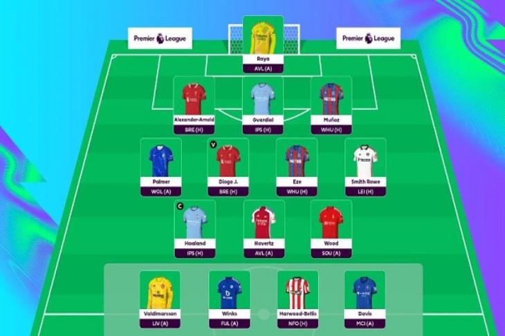 الوسط: كول بالمر من تشيلسي (17 نقطة)، ديوجو جوتا من ليفربول (6 نقاط)، إيزي من كريستال بالاس (نقطتان)، إيميل سميث رو من فولهام (10 نقاط)