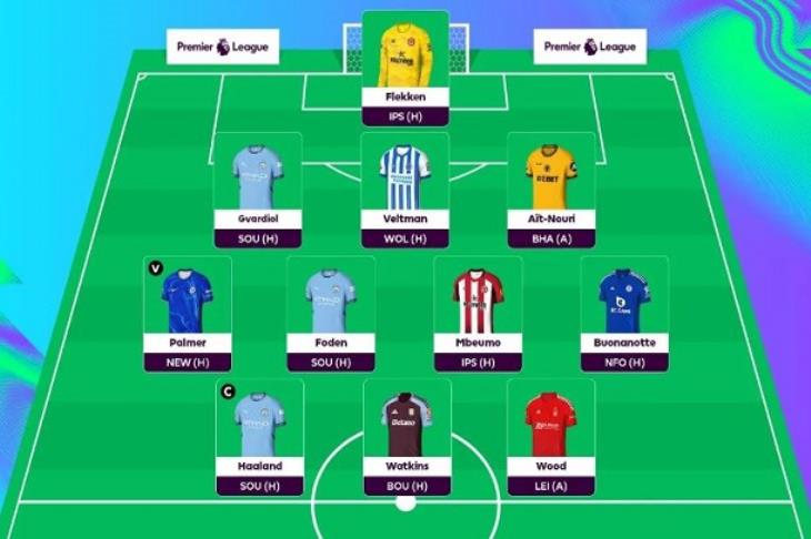 - الهجوم: هالاند من مانشستر سيتي (12 نقطة بعد شارة الكابتن)، واتكينز من أستون فيلا (نقطتان)، وود من نوتنجهام فورست (13 نقطة)