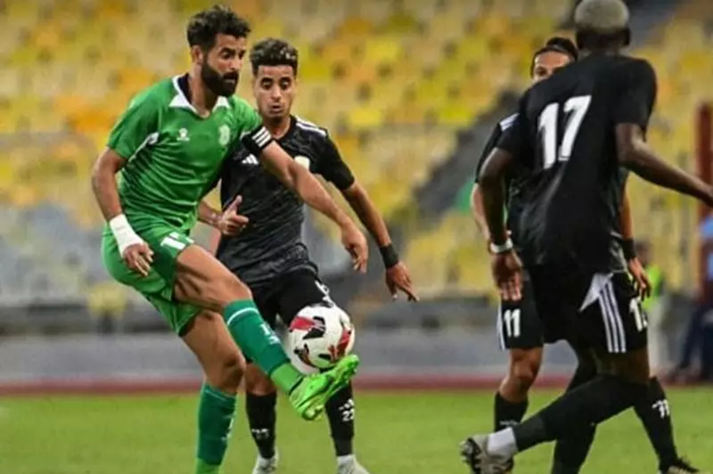 تسديدة من ابراهيم عادل على حدود منطقة الجزاء ويتصدى لها الحارس