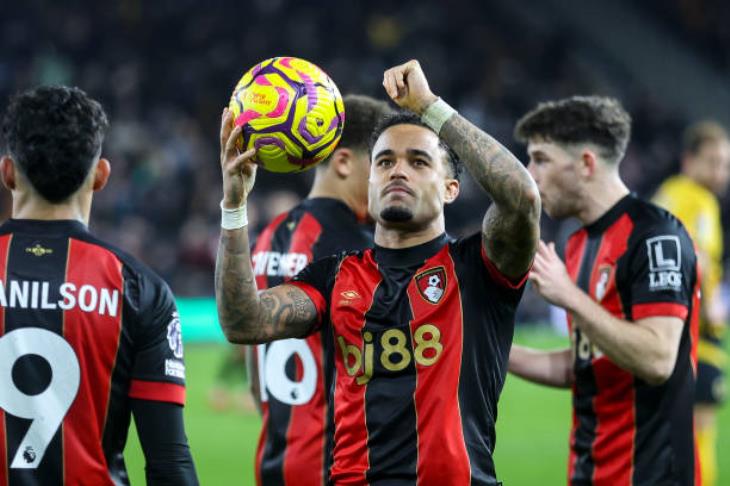 جاستن كلويفرت مع كرة الهاتريك أمام وولفرهامبتون