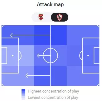 خريطة مناطق كثافة هجوم الزمالك في القمة