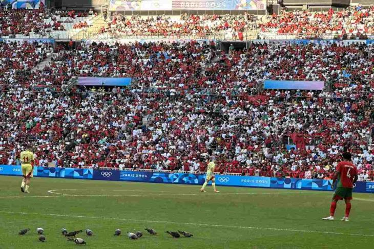 تصدرت مباراة المغرب وإسبانيا لقطة غريبة حيث ظهرت أسراب من الحمام بشكل متكرر خلال المباراة التي تقام في نصف نهائي أولمبياد باريس 2024 .