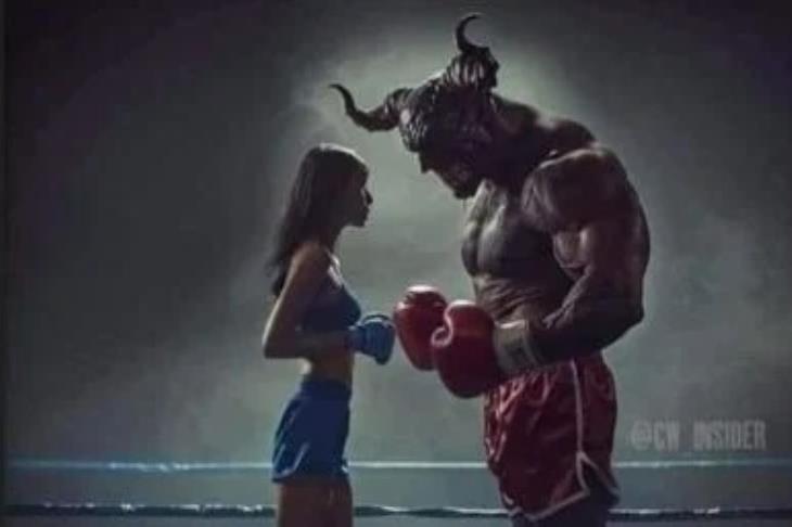 ونشرت لوكا عبر حسابها على موقع تبادل الصور "انستجرام" صورة لشيطان يواجه الإيطالية أنجيلا كاريني وعلقت "ليست خائفة ، إذا كانت رجلاً، فسيكون ذلك أكبر انتصارًا بالنسبة لي ".