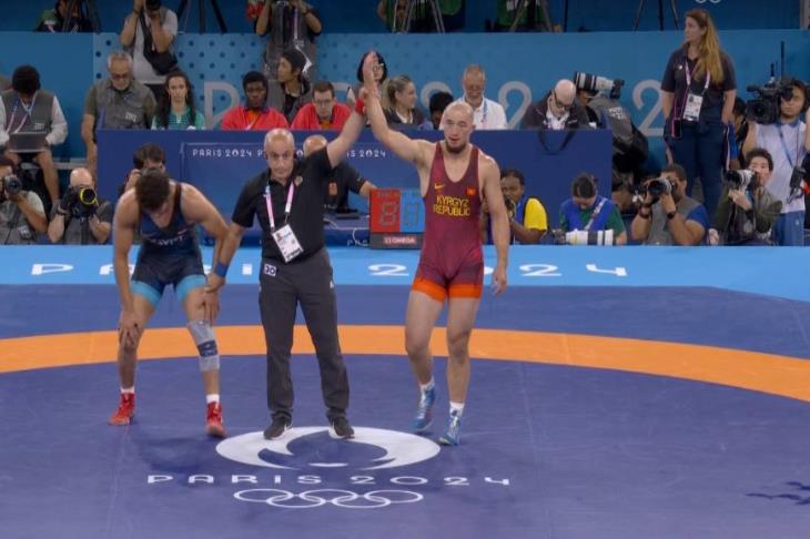 وأقيمت مباراة محمد جبر مع لاعب قرغيزستان في منافسات وزن 97 كجم للمصارعة الرومانية بأولمبياد باريس 2024.
