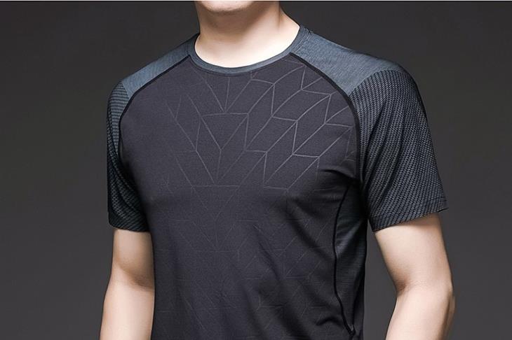 - تيشرت رياضي باكمام قصيرة ورقبة دائرية ضيقة مصنوع من قماش ممتص للعرق وطارد للروائح الكريهة لتبقى جافًا ومرتاحًا أثناء التمرين.