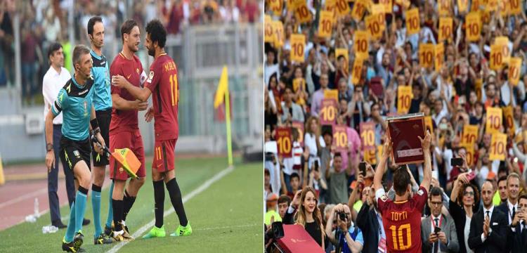 وحظى الدولي المصري محمد صلاح بلقطة استثنائية عندما حل توتي بدلا منه في المباراة، ليشارك في اخر لحظاته مع روما الذي قضى بين صفوفه 25 عام.
