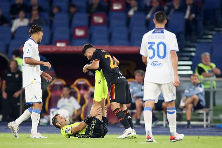 تعرض ماتيو ماركيتي، حكم مباراة إيه إس روما وضيفه فروسينوني في الدوري الإيطالي، للإصابة بعدما اصطدم بحسام عوار، لاعب فريق العاصمة، قبل دقائق من نهاية المباراة.