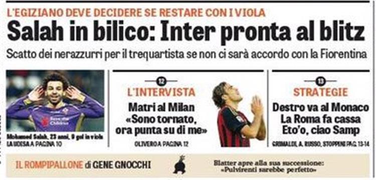 فقد نشرت صحيفة "لاجازيتا ديلو سبورت" الإيطالية في صفحتها الأولى بأن إنتر ميلان يستهدف التعاقد مع صلاح في فترة الانتقالات الصيفية الجارية.