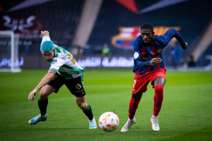 وبدأ فريق برشلونة اللقاء بتشكيل هجومي حيث أرسل عثمان ديمبيلي تمريرة لروبرت ليفاندوفسكي، ولكنه لا يستطيع التغلب عليها.