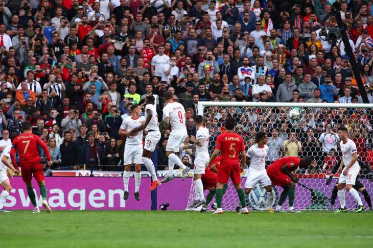 وتقدم رونالدو بهدف للبرتغال في الدقيقة 25 من ضربة حرة مباشرة من مسافة 25 ياردة ، حصل عليها بنفسه وسددها قوية بقدمه اليمنى لتسكن الزاوية اليسرى للحارس السويسري يان سومر.