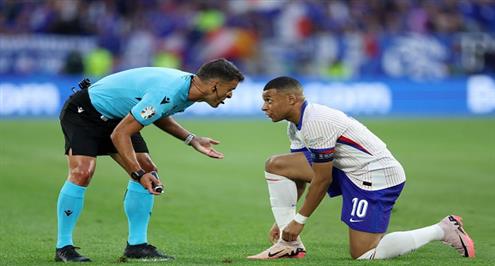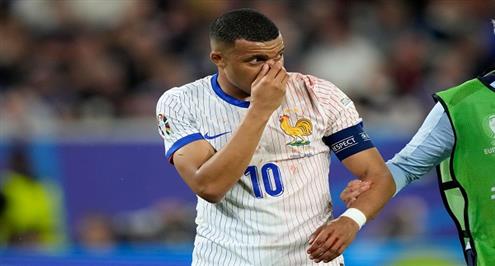 إصابة قوية لكيليان مبابي في الأنف بمباراة فرنسا والنمسا