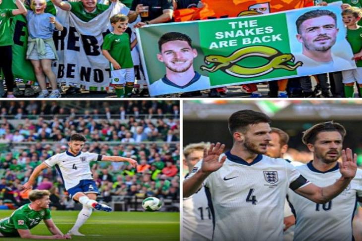 وكانت جماهير أيرلندا رفعت لافتة في المدرجات، تحتوي على صورة لجاك جريليش وديكلان رايس، ومكتوب عليها: "الأفاعي عادت".