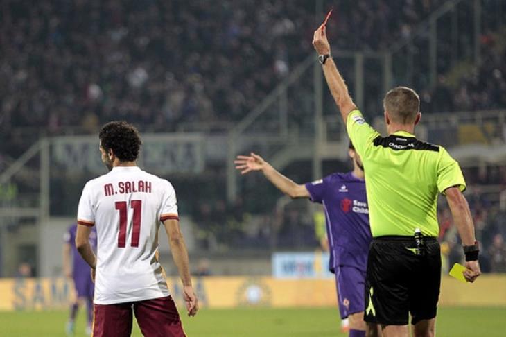 تلك البطاقة التي حصل عليه صلاح (صفراء ثم حمراء) كانت أول عقوبة إدارية يحصل عليها اللاعب المصري خلال مسيرته في الدوري الإيطالي.
