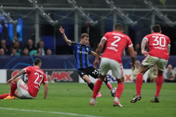 سدد إدين دجيكو مهاجم إنتر كرة رأسية قوية، مرت بجانب القائم الأيسر لحارس بنفيكا في الدقيقة 61 من زمن الشوط الثاني.