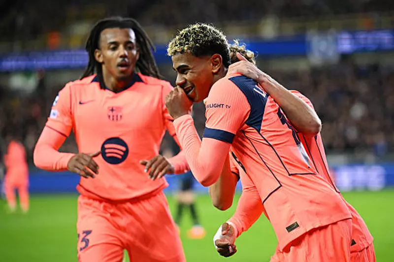 حافظ لامين يامال، لاعب برشلونة، على آمال فريقه أمام كلوب بروج، في المباراة التي تجري بينهما بدوري أبطال أوروبا، بعد أن تمكن من هز شباك أصحاب الأرض في الدقيقة 61 من زمن المباراة.