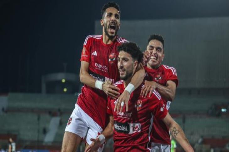 احتفال لاعبو الأهلي بهدف وسام أبو علي