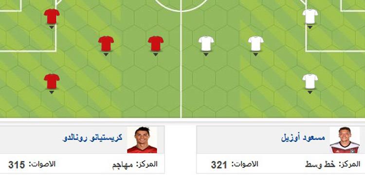 وجاء أوزيل في المقدمة برصيد 312 صوت مقابل 315 لكريستيانو رونالدو في المركز الثاني وفي المركز الثالث جاء توماس موللر صاحب الهاتريك برصيد 178 صوت.