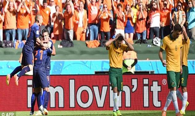 وصوب ويسلي شنايدر كرة قوية على مرمى منتخب إستراليا حولها الحارس إلى خارج الشباك لركلة ركنية في الدقيقة 5 وسط هيمنة هولندية.