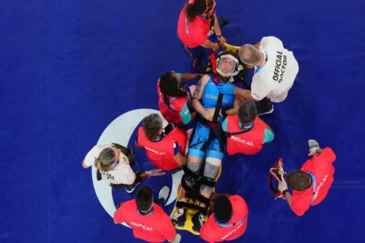 وتدخل الأطباء فور سقوط اللاعبة الرومانية، وتم حملها على نقالة، للاطمئنان على إصابتها عقب نهاية اللقاء.
